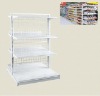 Wired Shelf: 1)Single:900*450*1800mm (4 layers) Double:900*900*1800mm(4 layers) 2)60kg/layer 3)Upright:40*60*1.5mm 4)Board:0.5mm 5)Finish: Powder coated. 6)Wired back board supermarket shelf 7)Sizes, loading capacity and numbers of shelves could be done as per customers' requests.
